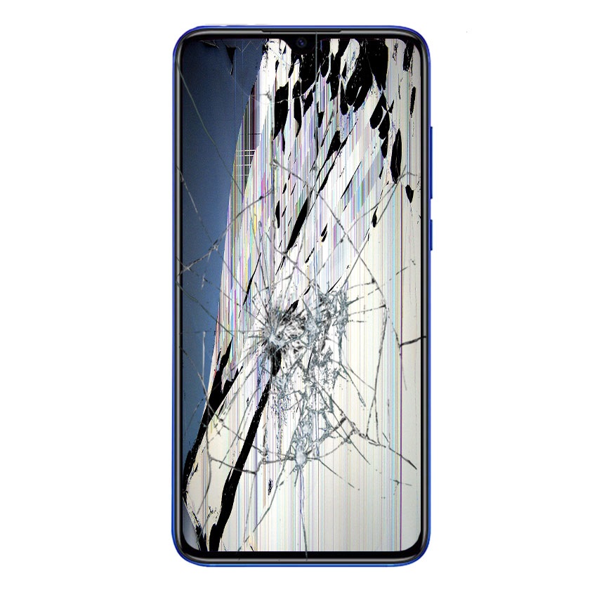 Ser din Xiaomi Mi 9 Lite ut som på bildet? Hvis berøringsskjermen ikke reagerer eller den er sterkt skadet og LCD skjermen lager uvanlige bilder, eller ikke fungerer i det hele tatt, trenger LCD- og berøringsskjermen din en reparasjon.
