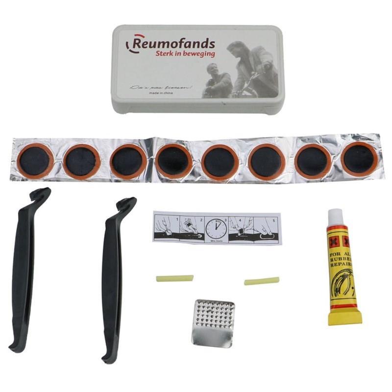 Dekkreparasjonsboksen kombinerer bekvemmelighet, bærbarhet og pålitelighet i ett sett. Med både selvklebende og limte lapper, i tillegg til viktige verktøy, gjør den dekkreparasjoner raskere, enklere og stressfrie uansett hvor du er.