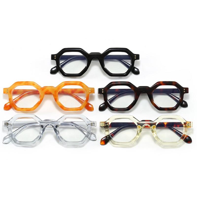 Med disse Retro Polygon Blue Light Blocking-brillene setter du et dristig stiluttrykk samtidig som du beskytter øynene dine mot digital tretthet. De unike, polygonformede innfatningene gir et vintagepreg, mens de integrerte neseputene og de sklisikre brillestengene sørger for at brillene er behagelige å ha på hele dagen. Enten du jobber, spiller eller bare oppdaterer deg på sosiale medier, er disse brillene både moteriktige og funksjonelle.