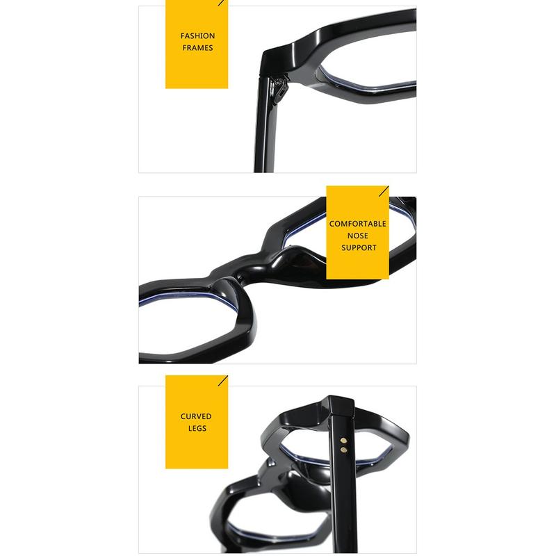Med disse Retro Polygon Blue Light Blocking-brillene setter du et dristig stiluttrykk samtidig som du beskytter øynene dine mot digital tretthet. De unike, polygonformede innfatningene gir et vintagepreg, mens de integrerte neseputene og de sklisikre brillestengene sørger for at brillene er behagelige å ha på hele dagen. Enten du jobber, spiller eller bare oppdaterer deg på sosiale medier, er disse brillene både moteriktige og funksjonelle.