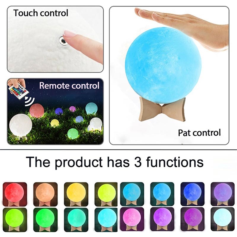 RGB LED Månelampe / Nattlys YK2302 - 15cm, 1000mAh, 16 farger, justerbar lysstyrke