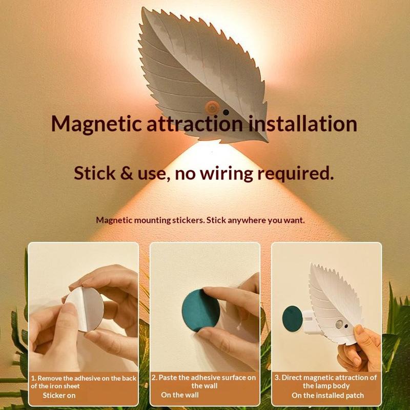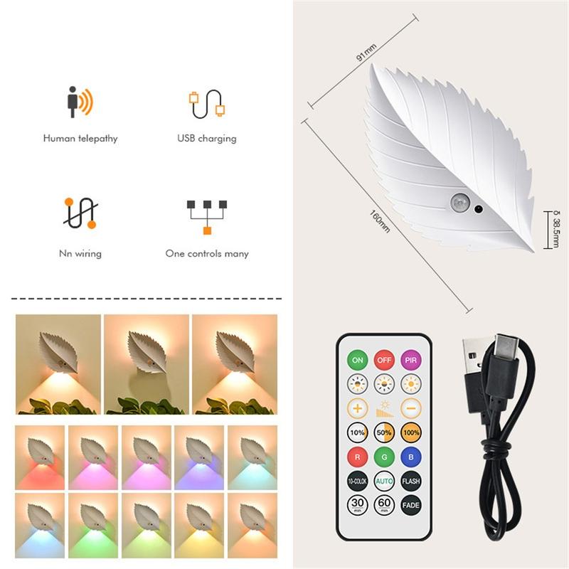 Gi ethvert rom et varmt og koselig lys med dette bladformede RGBW-nattlyset, som er designet for å være dekorativt samtidig som det gir deg praktisk belysning akkurat når du trenger det. Det kombinerer bevegelsessensor med fjernkontroll, slik at det kan slås på automatisk når du går forbi eller justeres fra sengen, sofaen eller skrivebordet. Med trinnløs dimning og 10 fargealternativer kan du bytte fra et mildt nattlys til stemningsbelysning for avslappende kvelder, barnerom eller veiledning i gangen.