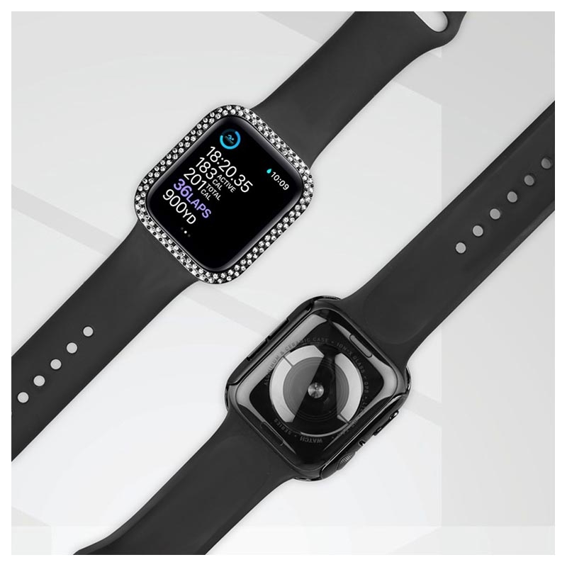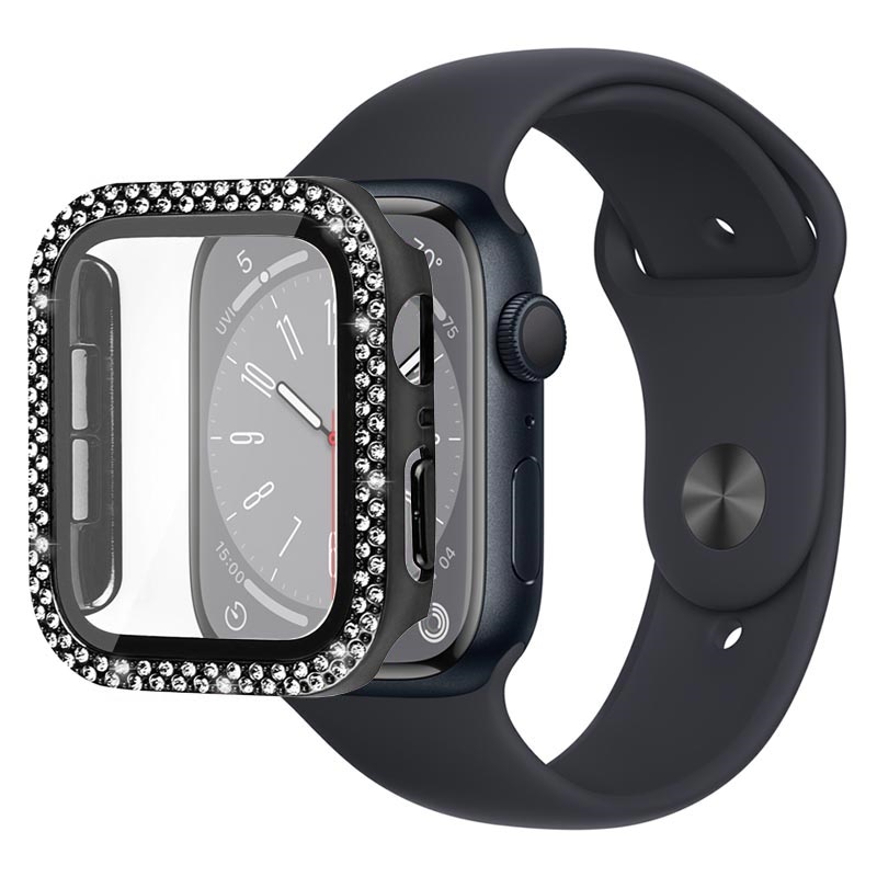Rhinestone Dekorative Deksel med Skjermbeskytter i Herdet Glass til Apple Watch Series 9, Apple Watch Series 8, Apple Watch Series 7