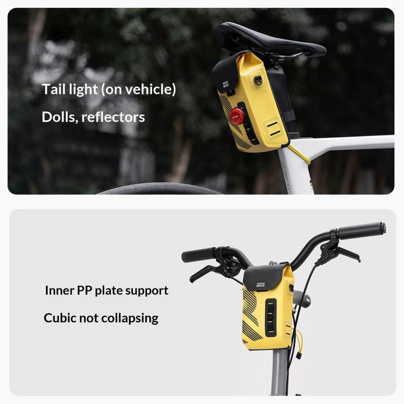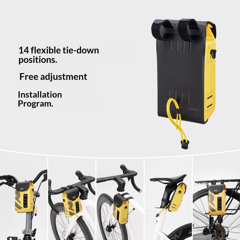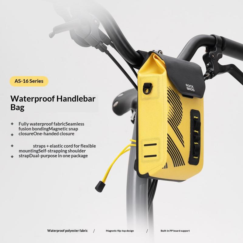 Ta med deg det viktigste på en sikker måte i all slags vær med ROCKBROS AS-160 styreveske. Den er laget for landeveissykler, terrengsykler og sammenleggbare sykler, og kombinerer vanntett stoff med sømløs sveising for å holde tingene dine tørre på regnfulle turer. Det magnetiske flip-lokket gir rask tilgang med én hånd mens du sykler, og det strukturerte interiøret med PP-plateunderstøttelse holder vesken stabil og formfast selv når den er fullpakket. En avtakbar skulderrem lar deg bytte fra sykkelveske til uformell skulderveske på få sekunder.
