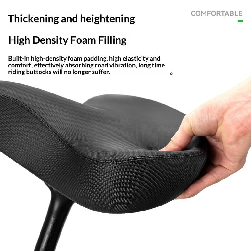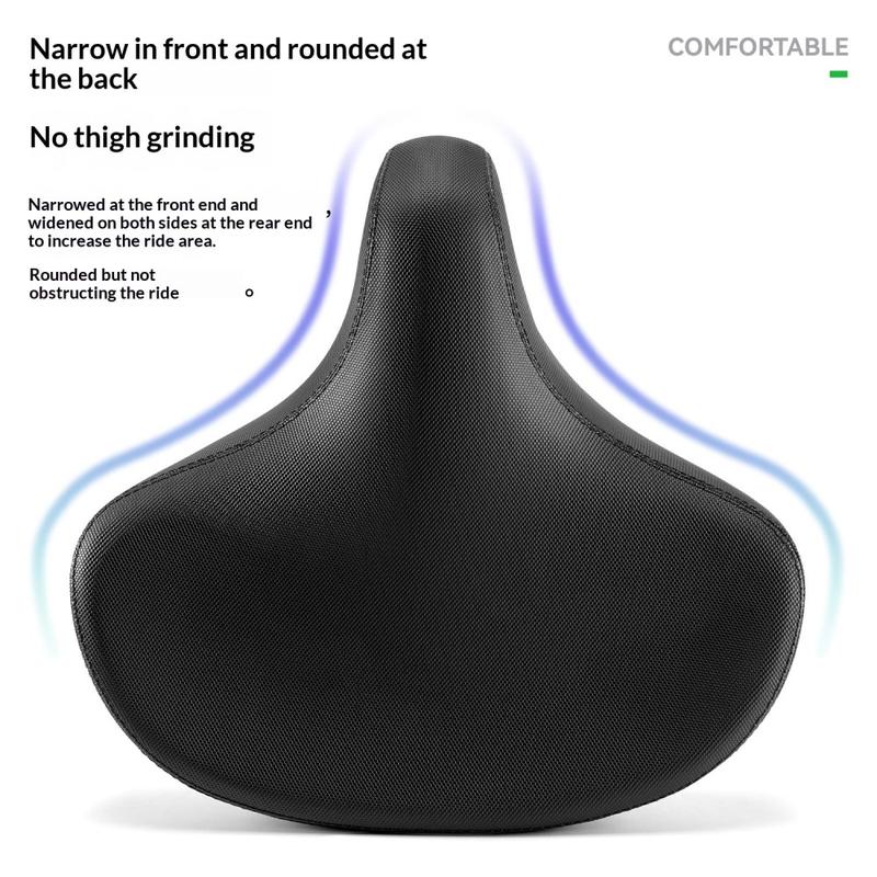 Den ca. 32 cm brede designen gir deg et større sitteområde, som bidrar til å fordele trykket jevnere og forbedre komforten på lengre turer. Den tykke polstringen av skum hjelper til med å absorbere støt fra ujevne veier og grovere terreng, noe som gjør det til en praktisk oppgradering for terrengsykler, fritidssykler, tur-sykler og el-sykler. Enten du sykler gjennom byen, på grusveier eller på sykkelturer i helgene, er dette setet laget for å gi stabil komfort i hverdagen.