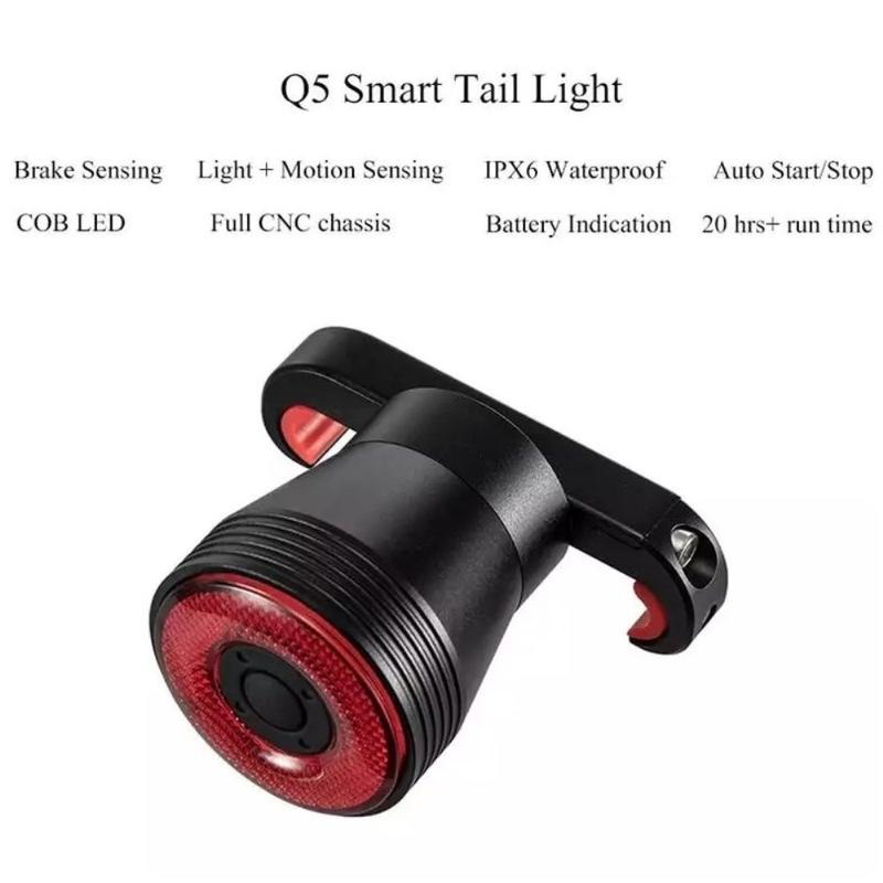ROCKBROS Q5 dobbel brakett smart sykkelbremselys sykkel baklyssensor automatisk vanntett led sykkellys baklys for sykkel - Svart
