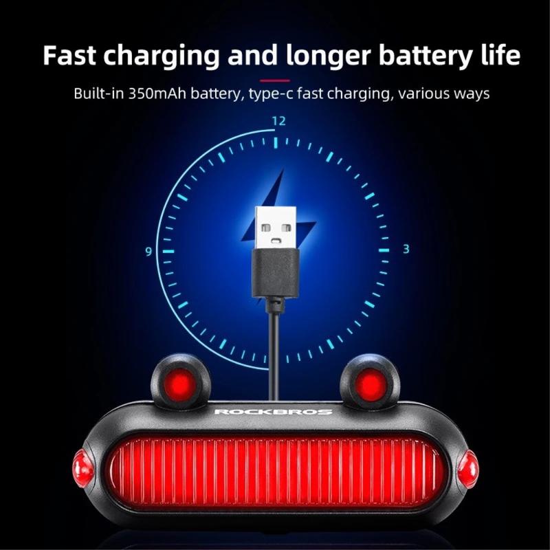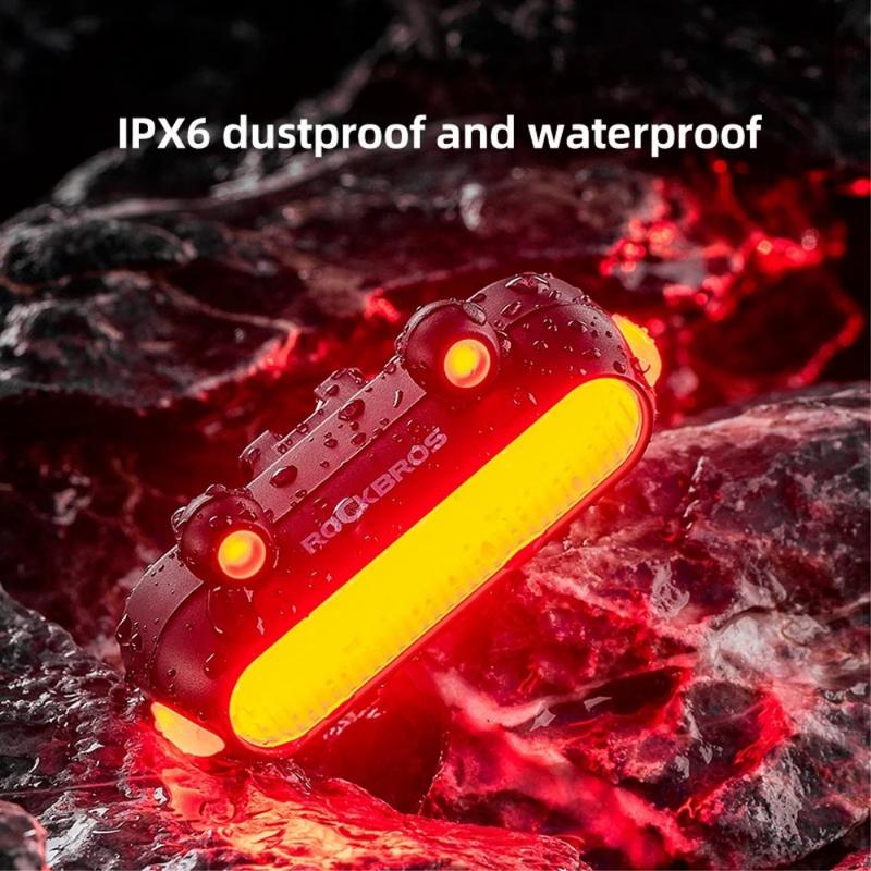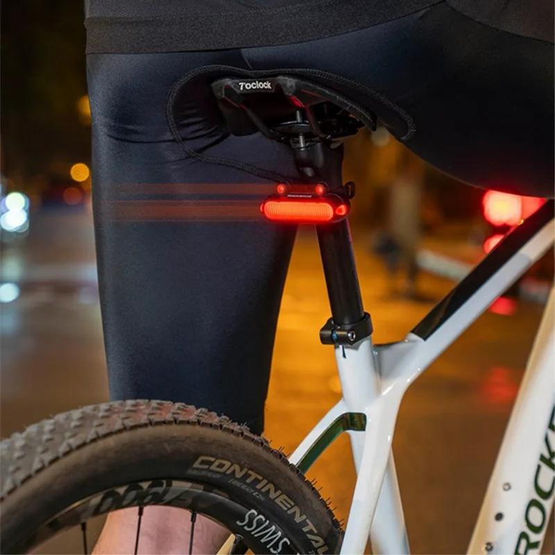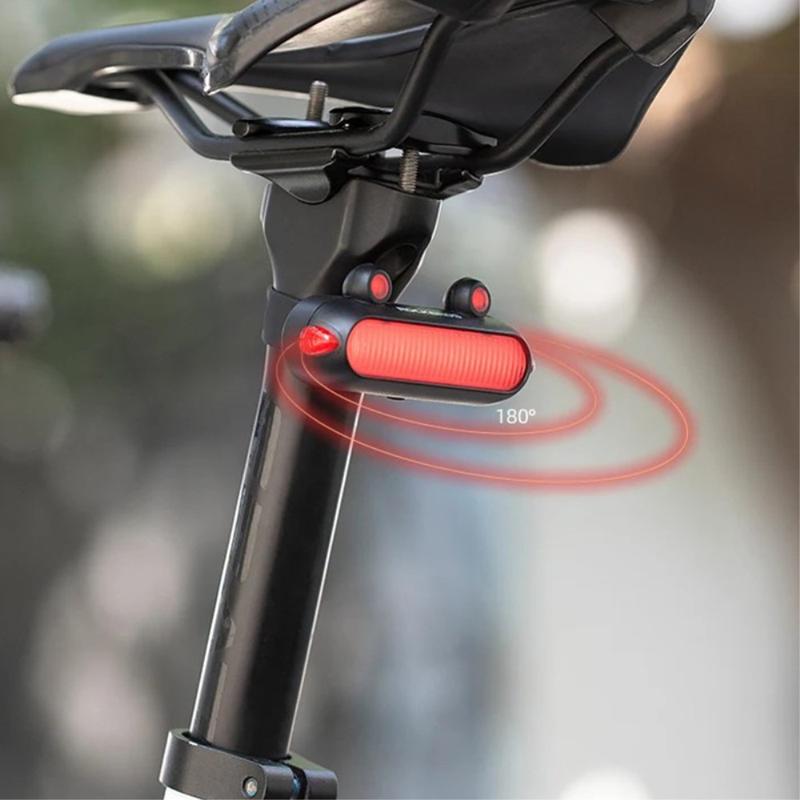 Sykkelbaklyset er utstyrt med en bevegelsessensor og lyssensor som aktiverer en lysmodus i 2 sekunder når sykkelen bremser, noe som effektivt advarer syklister bak.