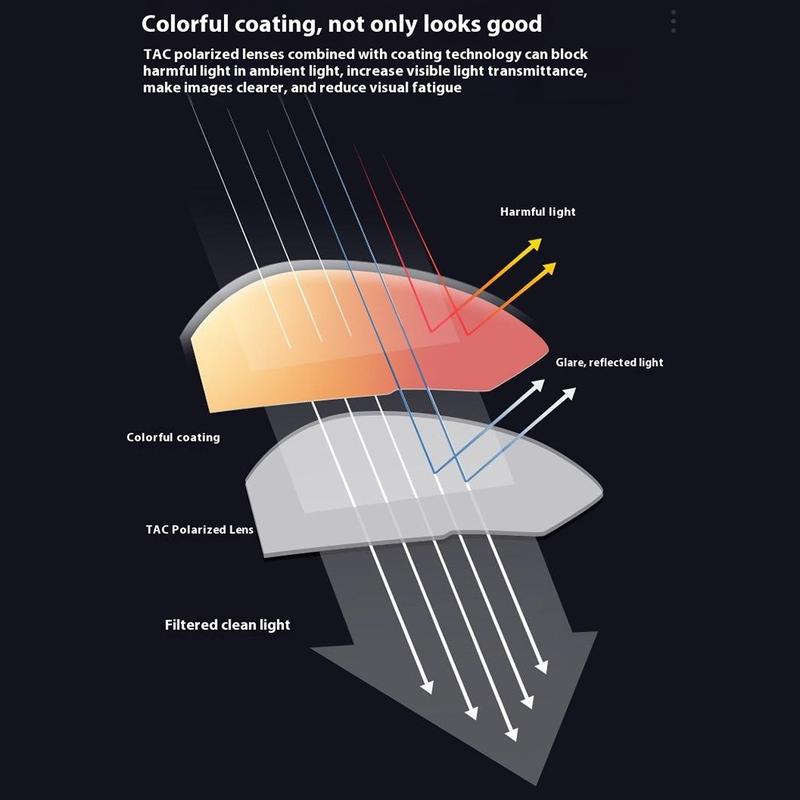 - Materialer: PC + TR-rammeelementer, TAC-linsemateriale for en lett, sporty konstruksjon