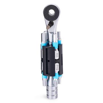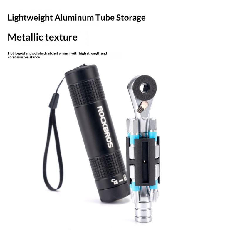 Rockbros TG-8601 kombinerer et smart skralleutforming, magnetisk bekvemmelighet og en kompakt formfaktor, noe som gjør den til et pålitelig, alt-i-ett sykkelreparasjonsverktøy for syklister som verdsetter effektivitet og bærbarhet.