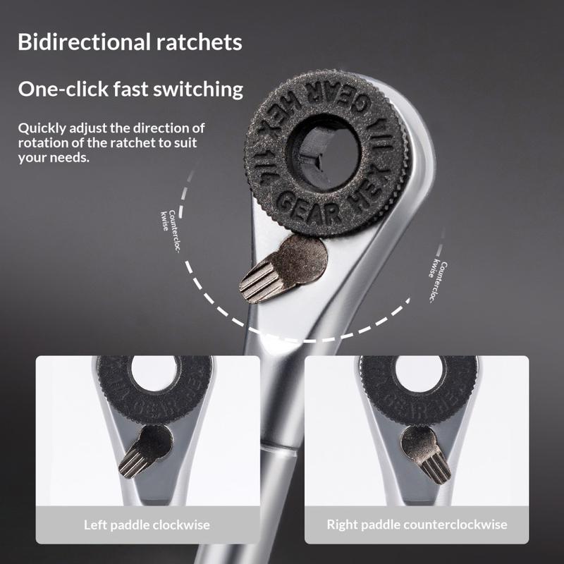 Rockbros TG-8601 har en innovativ toveis skrallemekanisme som gjør at du kan stramme eller løsne festene jevnt uten å måtte flytte verktøyet, noe som sparer tid og krefter under sykkelvedlikehold.