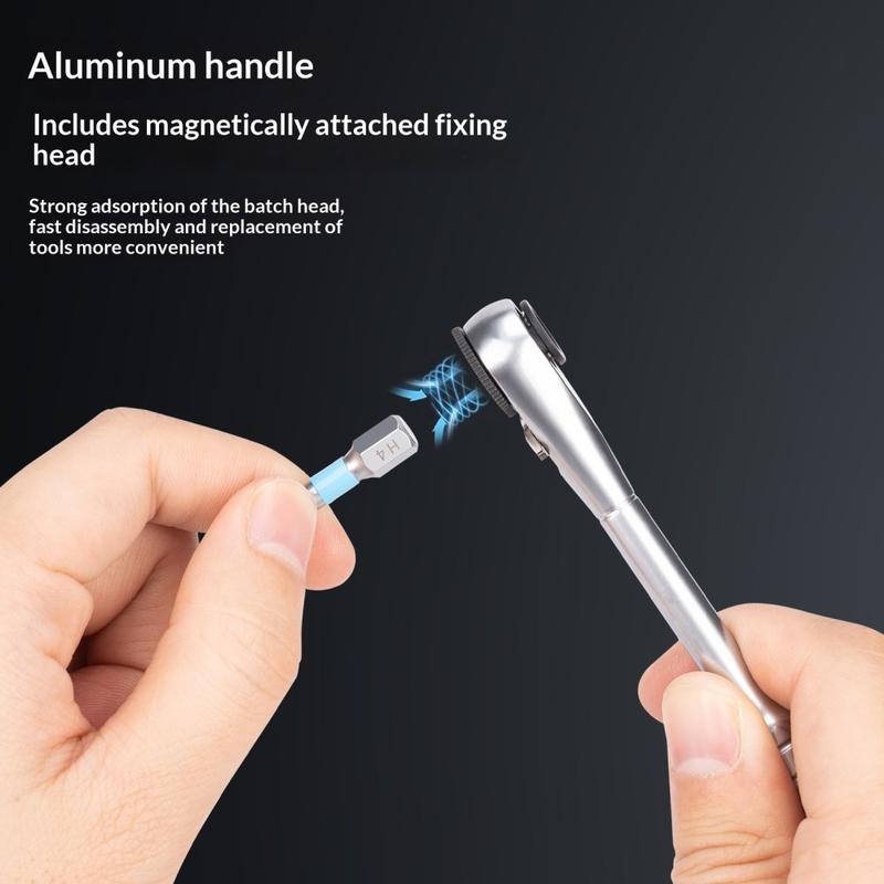 En magnetisk hurtigkoblingsstang gjør det mulig å skifte bits raskt og sikkert, noe som forbedrer effektiviteten i arbeidsflyten og reduserer risikoen for å miste små deler under reparasjoner.