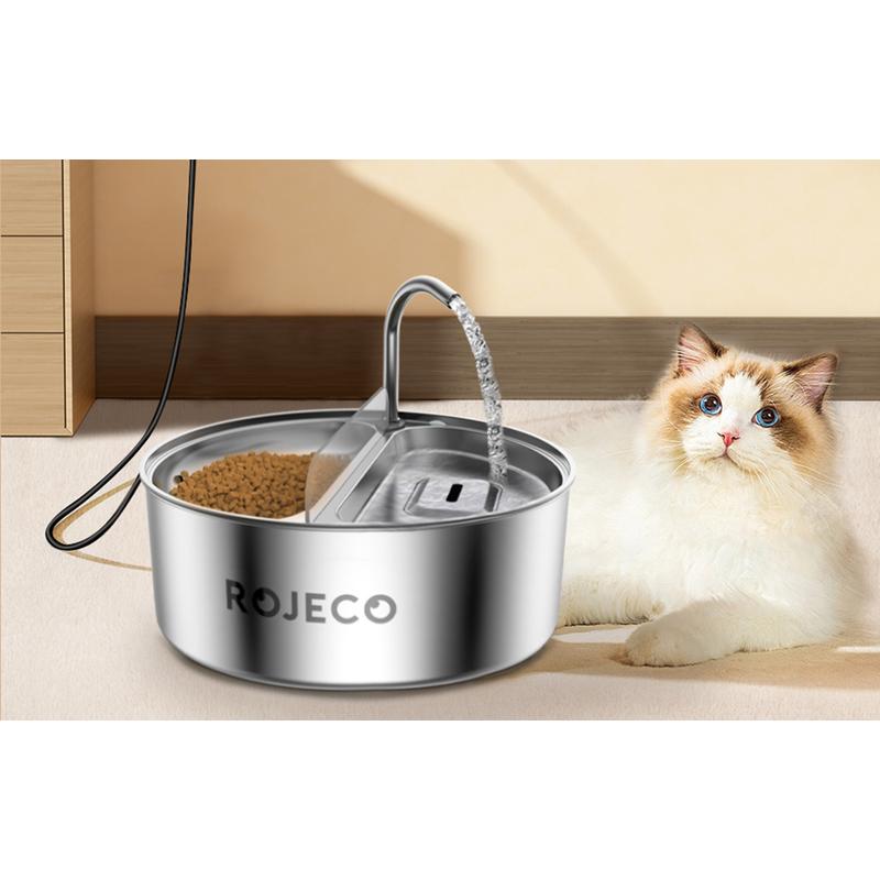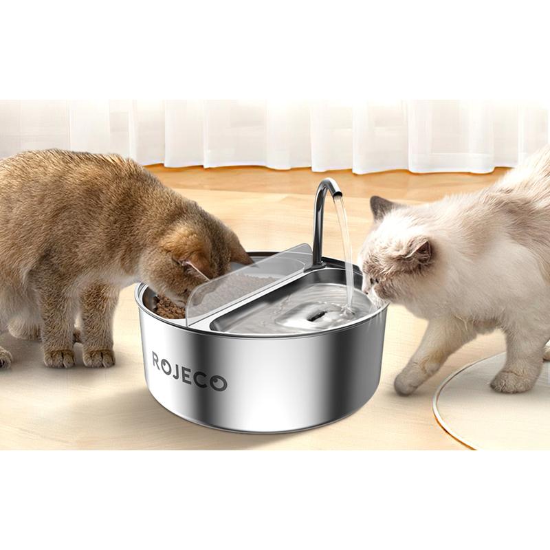 Rojeco 2-i-1 vannfontene og mater i rustfritt stål for kjæledyr - 3.2liter