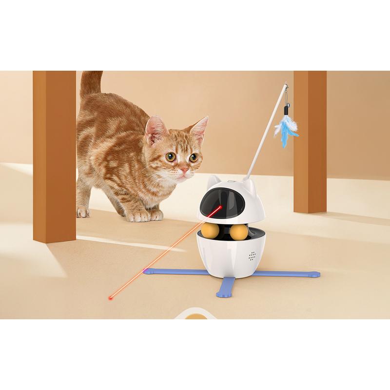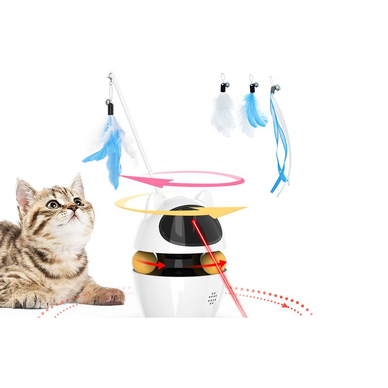 - Trippel lekemodus: Inkluderer en laserpeker, en roterende fjærstav og rullende baller, noe som tilfredsstiller kattens jakt-, hopp- og jaktinstinkter.