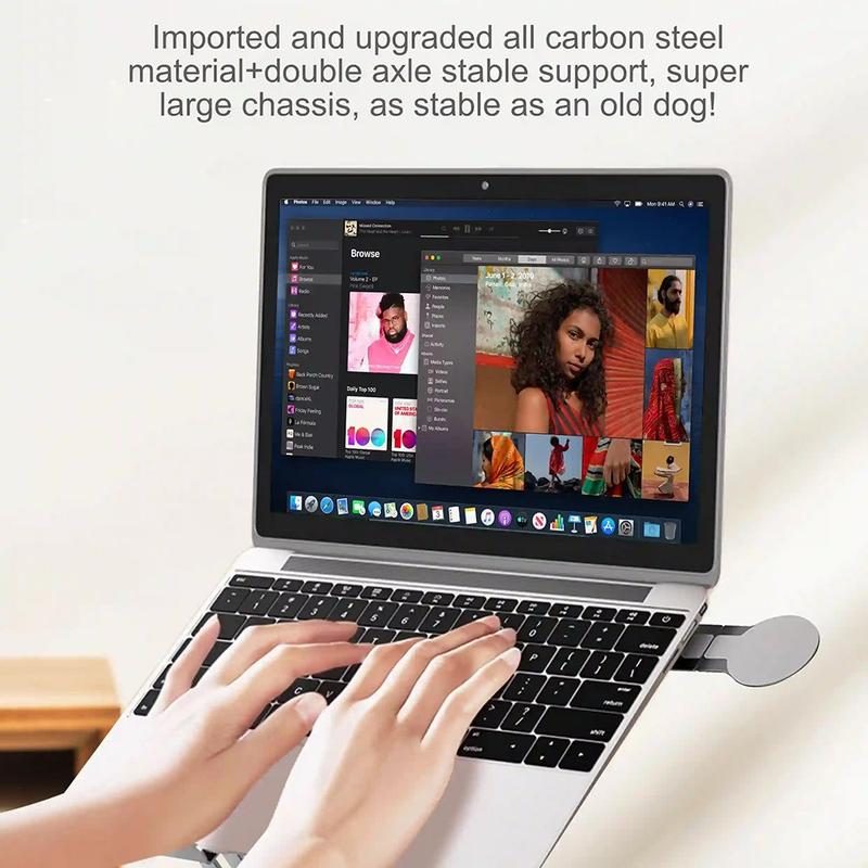 Dette stativet er mer enn bare en holder - det er en oppgradering av arbeidsområdet. Det hjelper deg med å opprettholde en sunnere holdning, forhindrer overoppheting av enheten og maksimerer plassen på skrivebordet. Den magnetiske telefonholderen på siden øker produktiviteten, noe som gjør det til et av de mest allsidige stativene på markedet.