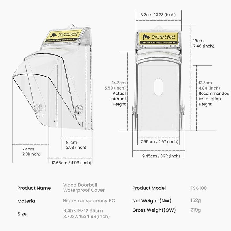 Dette dekselet beskytter dørklokken effektivt mot regn, snø og støv, noe som bidrar til å forlenge levetiden til enheten og opprettholde stabil drift gjennom hele året. Ideell for utsatte innganger, porter og utendørs vegger.
