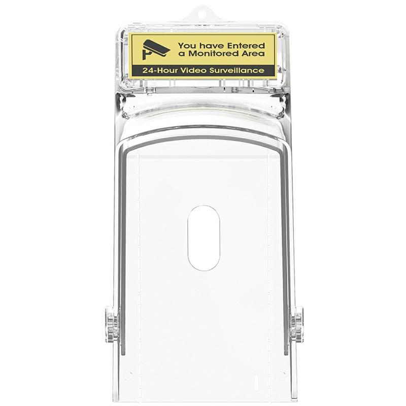 En fluorescerende advarselsetikett på toppen av dekselet fungerer som en visuell avskrekker, varsler potensielle inntrengere om aktiv overvåking og reduserer risikoen for sabotasje eller tyveri.