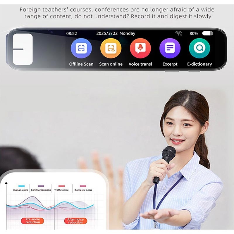 S08B er mer enn en oversetter - den er et bærbart kommunikasjonsnav. Den dekker et stort utvalg av språk og har både online- og offlinefunksjoner, noe som gjør den ideell for internasjonale reiser, forretningsmøter og studier. Den kompakte størrelsen og de multifunksjonelle funksjonene gjør den til en alt-i-ett-løsning for global kommunikasjon.