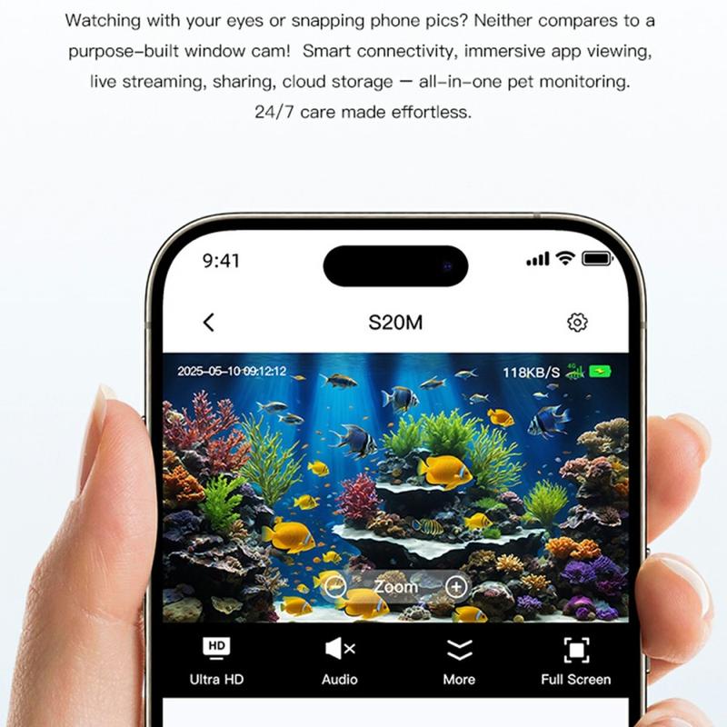 S20M er ideell for brukere som trenger stillegående, diskret overvåking med klare bilder og interaksjon i sanntid. Det selvlysende nattsynet gjør den spesielt egnet for akvarier, mens toveis lyd og bevegelsesdeteksjon gir ekstra sikkerhetsfunksjonalitet i hverdagen. Den er kompakt, enkel å installere og allsidig, og passer sømløst inn i overvåkingsoppsett i hjemmet.