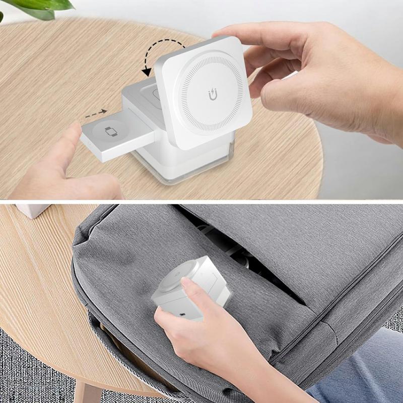 Hold orden på hverdagsladingen din og gjør den praktisk med den magnetiske 3-i-1 trådløse ladestasjonen S6. Denne sammenleggbare docken er designet for å lade iPhone, Apple Watch og AirPods på ett kompakt sted, noe som gjør den ideell for bruk hjemme, på kontoret eller på reise.