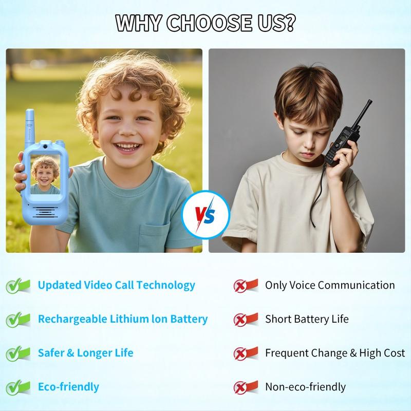 S88 video-walkie talkies for barn kombinerer moro, sikkerhet og læring i ett engasjerende produkt. De oppmuntrer til samspill, støtter fantasifull lek og gir barn en sikker måte å kommunisere på uten smarttelefoner. De er enkle å bruke, oppladbare og designet for barn, og er et utmerket valg for familier.
