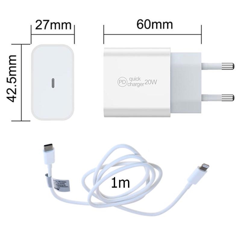 Saii 20W PD Lader og Lightning Kabel til iPhone, iPad, iPod - USB-C, Lightning 8-pin, 20W, 480Mbps