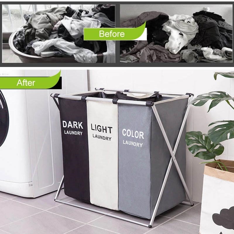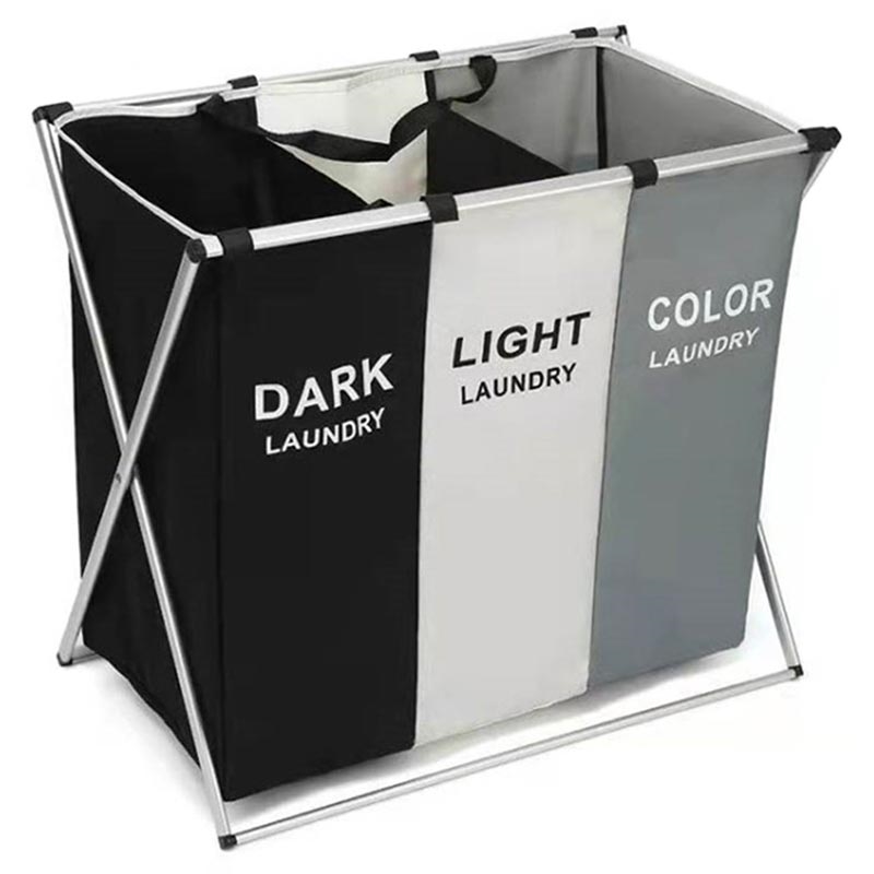 Denne sammenleggbare 3-cellers skittentøyskurven hjelper deg med å organisere og skille klærne fra hverandre uten problemer. Med tre merkede rom og en sterk aluminiumsramme holder den skittentøyet sortert og ryddig oppbevart, samtidig som den tilfører hjemmet ditt et rent og moderne utseende.