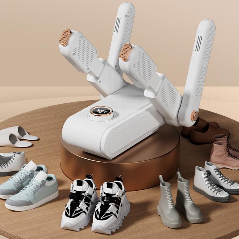 Sammenleggbar 4-armet skotørker med tidtaker - tørker 2 par på en gang, 360° varmesirkulasjon, smart temperaturkontroll, avfuktende hurtigtørking (150W)