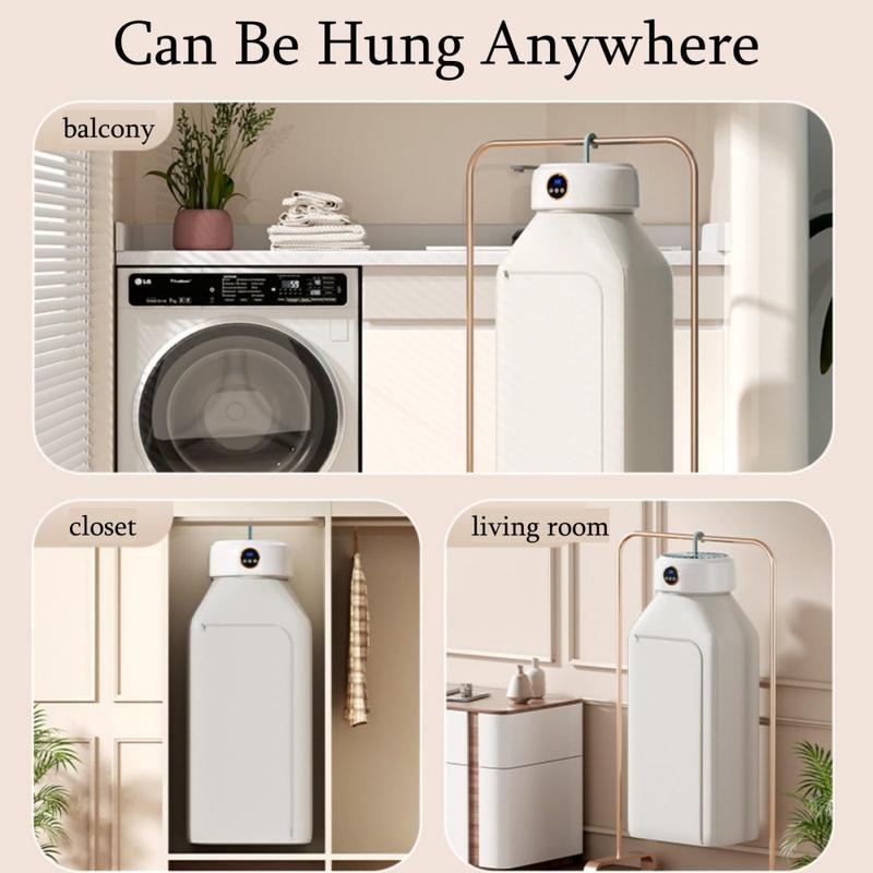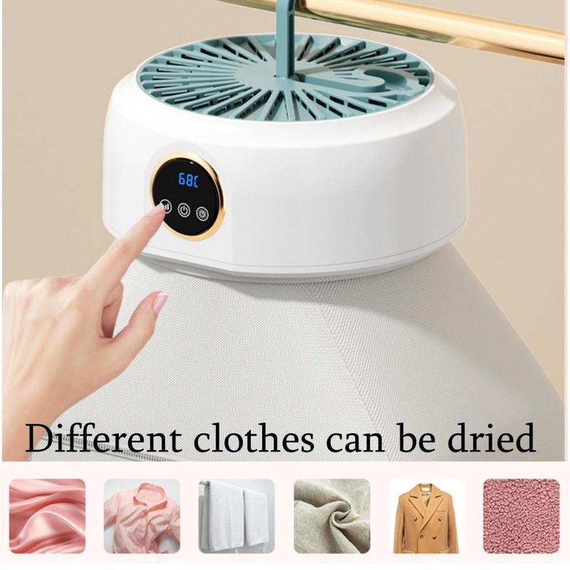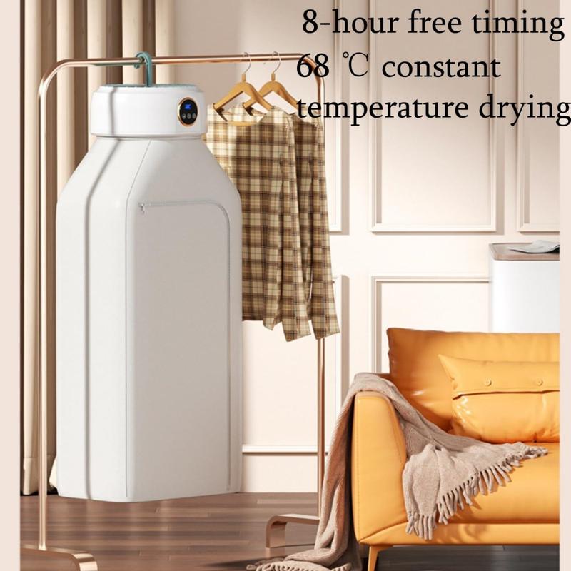 Sammenleggbar tørketrommel med 360° sirkulasjon - tørketrommel med konstant temperatur på 68 °C, kapasitet på opptil 10 kg, 8-timers timer, 600 W, design med opphengskrok
