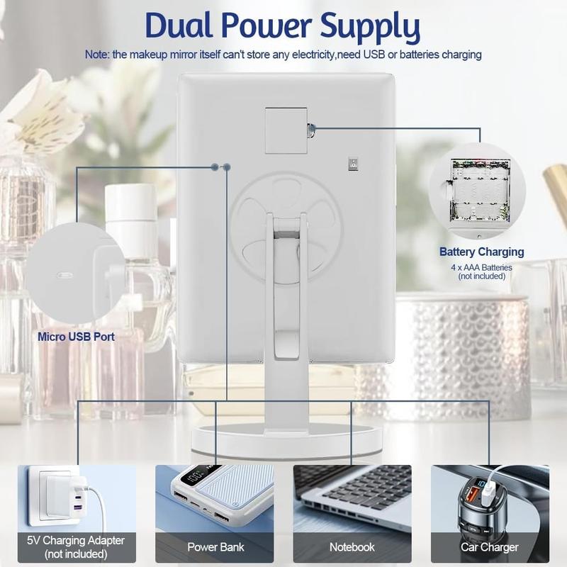 Lys opp skjønnhetsrutinen din med det sammenleggbare LED-sminkespeilet med 3 sider, som er designet for å gi presisjon, lysstyrke og fleksibilitet for feilfri sminkeapplikasjon. Med justerbar belysning og flere forstørrelsesalternativer hjelper dette stilige bordspeilet deg med å oppnå resultater av salongkvalitet hjemme.