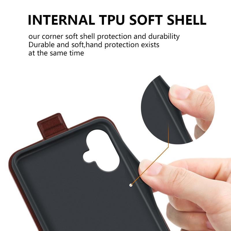 - Dette kvalitetsetuiet med vertikal flip for Samsung Galaxy A06 er laget av polyuretan og TPU