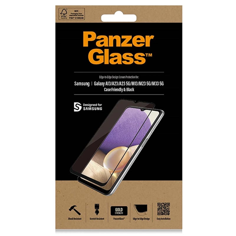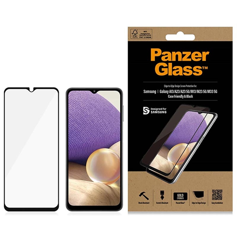 Med Samsung Galaxy A13/A23 PanzerGlass Case Friendly Skjermbeskytter - Svart Kant, kan du være sikker på at telefonen din er godt beskyttet mot hverdagens utfordringer, samtidig som den ser stilfull ut.