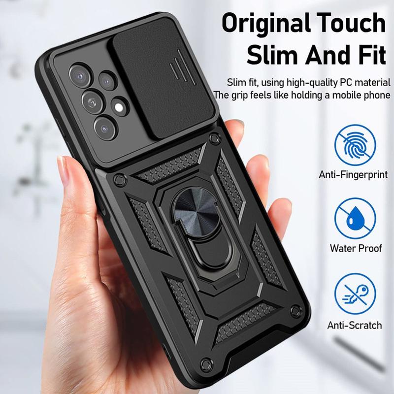 Dette coveret er perfekt til daglig bruk, enten du er på jobb, på skolen eller på farten. Den roterbare metalring-kickstanden gjør det enkelt å se videoer eller foreta videosamtaler uten å måtte holde telefonen. Skyve-kameradekselet er ideelt for de som ofte tar bilder og ønsker å holde kameraet i toppform. Anti-fingeravtrykk-funksjonen er perfekt for de som ønsker å holde telefonen ren og pen hele dagen.