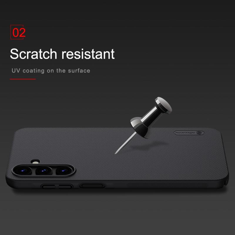 Utstyr Samsung Galaxy A15 med dette dekselet fra Nillkin Super Frosted Shield serien og ikke bekymre deg for riper og annen type daglig skade. Nillkin Super Frosted Shield deksel til Samsung Galaxy A15 har et grepevennlig og anti-fingeravtrykk overflate.