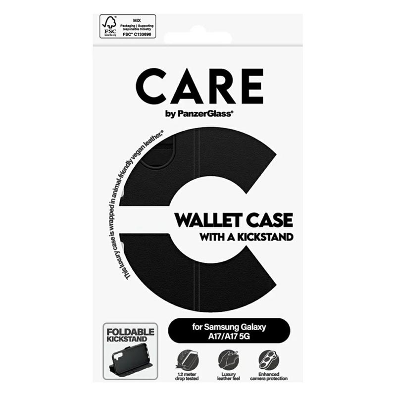 Invester i CARE by PanzerGlass Feature Wallet Case with Kickstand for å gi din Samsung Galaxy A17, Galaxy M17 overlegen beskyttelse og stil, og sørg for at enheten din forblir like upåklagelig som din personlige smak.