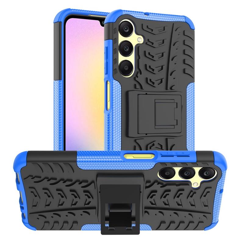 Det harde ytre skall gjør Samsung Galaxy A25 mindre utsatt for bøying, mens det støtdempende indre deksel beskytter den mot dråper og støt. I tillegg har det også et integrert stativ for komfortabel videovisning på Samsung Galaxy A25.