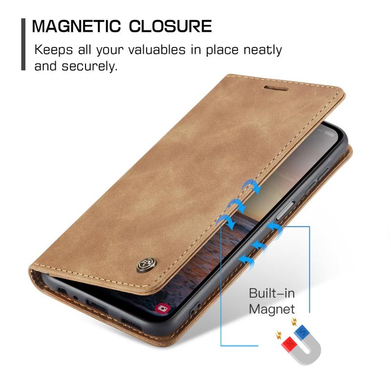 - Innebygde magneter holder Caseme 013-serien lommebok-deksel lukket