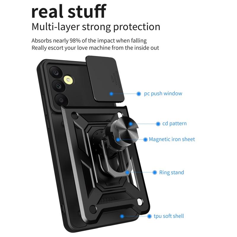 - Roterende ring hybridetui med kameraavskjerming for Samsung Galaxy A25