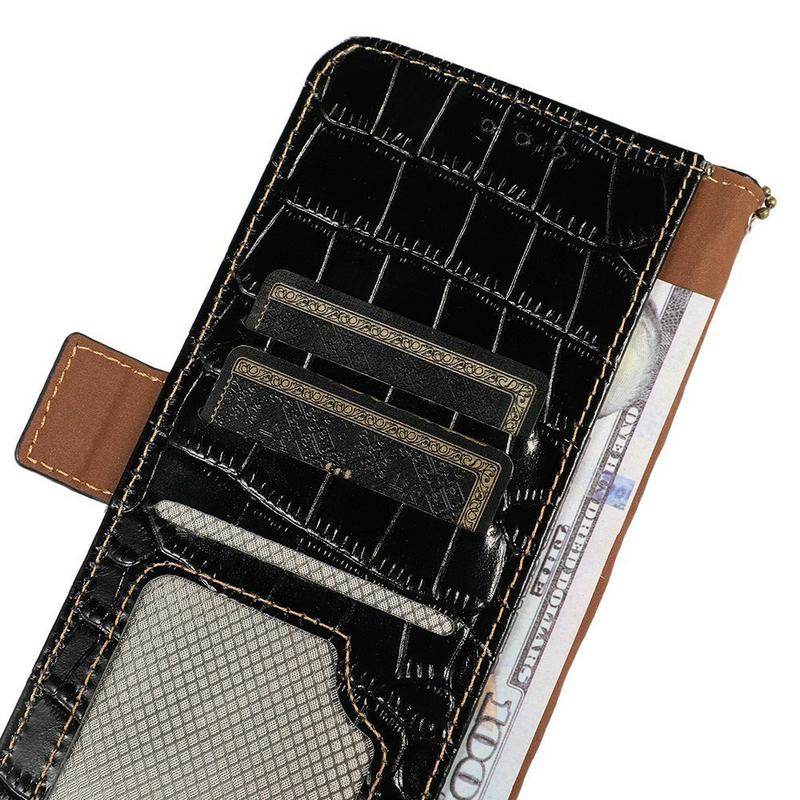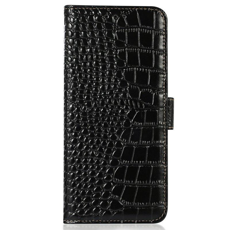 Et lett og mykt lommebokdeksel med en unik krokodilletekstur, det perfekte valget for å beskytte din Samsung Galaxy A27 og holde den fri for skader og slitasje. Den er laget av høykvalitets ekte lær og innvendig TPU-materiale, designet med tre kortspor, ett ID-spor og én lomme til kontanter, ideell for å bære det du trenger ved siden av Samsung Galaxy A27. I tillegg blokkerer RFID-teknologien effektivt signaler og holder dataene dine sikret.