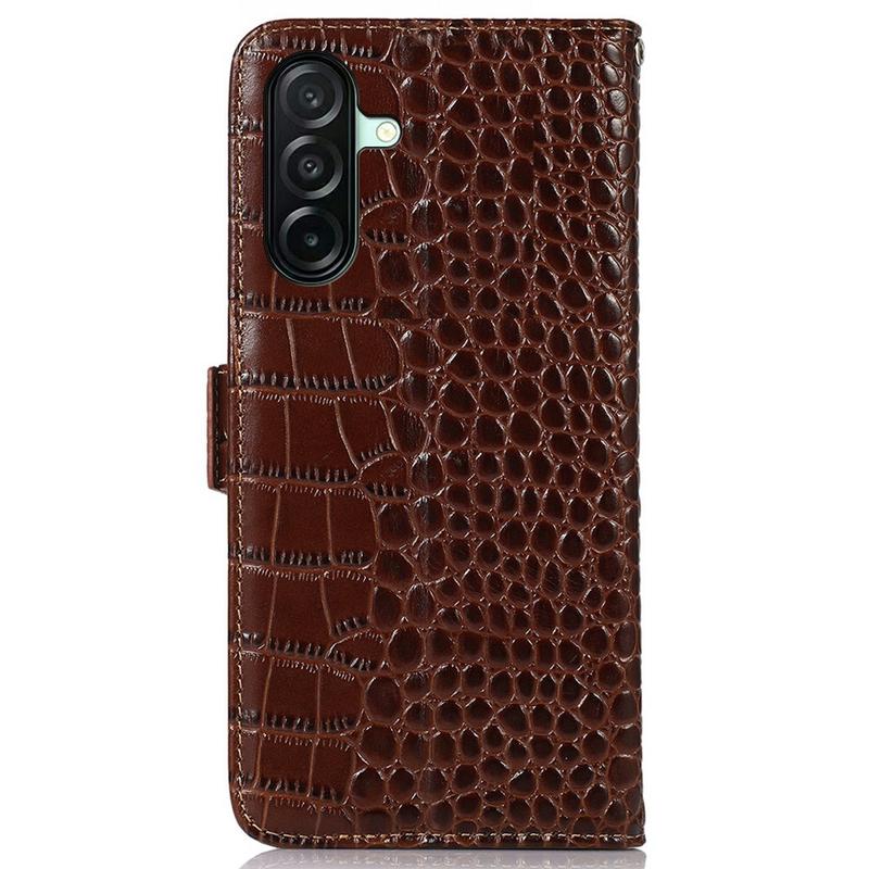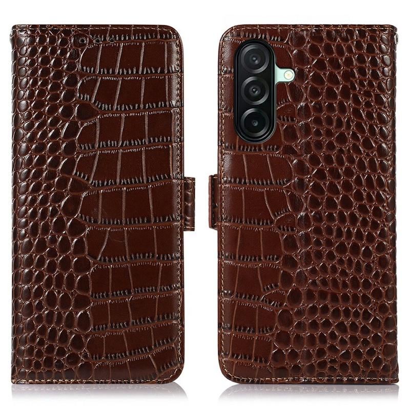 Samsung Galaxy A27 Crocodile Series Lommebok-deksel i Lær med RFID - Brun