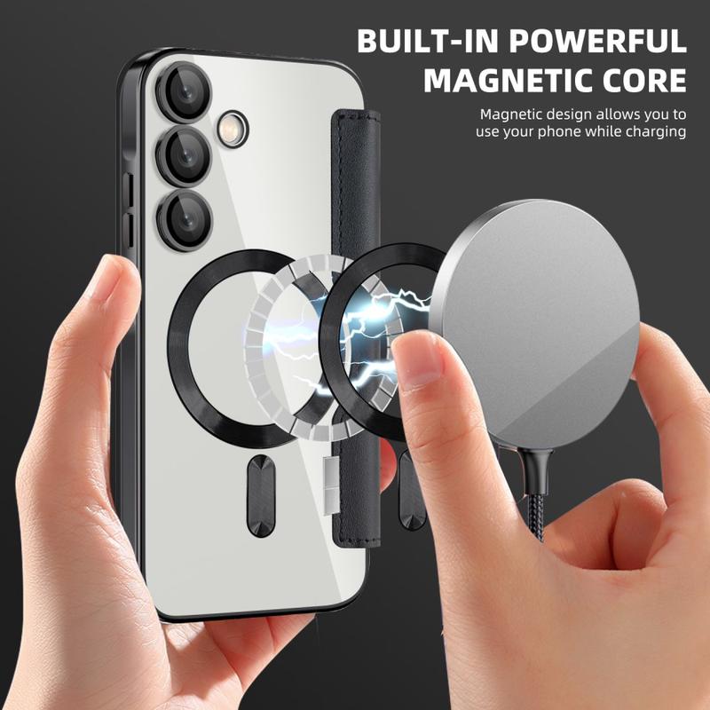 Dette førsteklasses Samsung Galaxy A35-etuiet er laget av TPU, akryl og polyuretan av høy kvalitet i en fin prosess for å sikre en delikat og utsøkt finish. Det er utstyrt med et praktisk kortspor som gjør det enkelt å dra kort og bruke dem når du er på farten, og har en sterk magnet for automatisk lukking, noe som gjør det trygt og praktisk å oppbevare ting på innsiden. Dette Samsung Galaxy A35-etuiet gir effektiv beskyttelse mot daglig slitasje, riper, merker og skrammer, mens den avanserte RFID-blokkeringsteknologien i kortsporet sikrer at dine personlige opplysninger er beskyttet mot tyveri. I tillegg er den innebygde magnetringen kompatibel med MagSafe trådløs lading, slik at du kan lade Samsung Galaxy A35 uten å ta av deg etuiet.