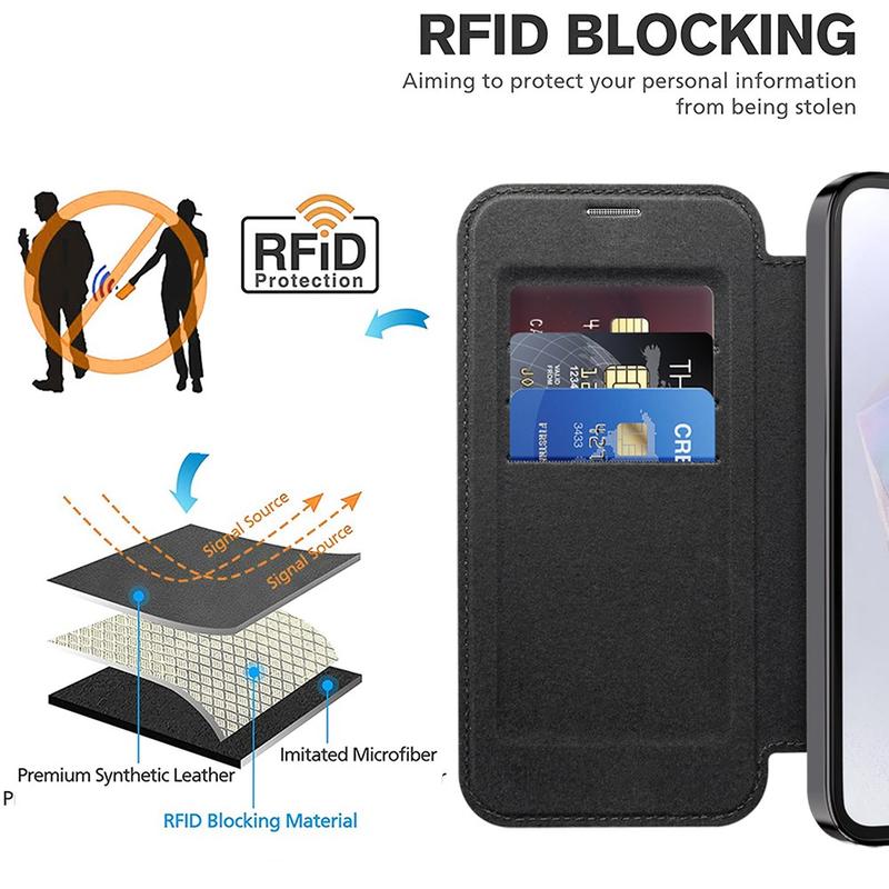 - Funksjoner: Kortspor, sterk magnet for automatisk lukking, RFID-blokkeringsteknologi, innebygd magnetring