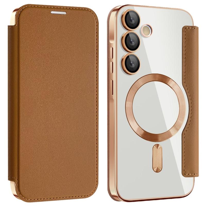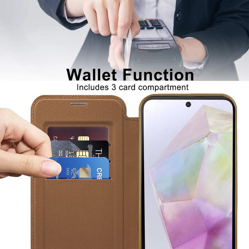 Dette førsteklasses Samsung Galaxy A35-etuiet er laget av TPU, akryl og polyuretan av høy kvalitet i en fin prosess for å sikre en delikat og utsøkt finish. Det er utstyrt med et praktisk kortspor som gjør det enkelt å dra kort og bruke dem når du er på farten, og har en sterk magnet for automatisk lukking, noe som gjør det trygt og praktisk å oppbevare ting på innsiden. Dette Samsung Galaxy A35-etuiet gir effektiv beskyttelse mot daglig slitasje, riper, merker og skrammer, mens den avanserte RFID-blokkeringsteknologien i kortsporet sikrer at dine personlige opplysninger er beskyttet mot tyveri. I tillegg er den innebygde magnetringen kompatibel med MagSafe trådløs lading, slik at du kan lade Samsung Galaxy A35 uten å ta av deg etuiet.