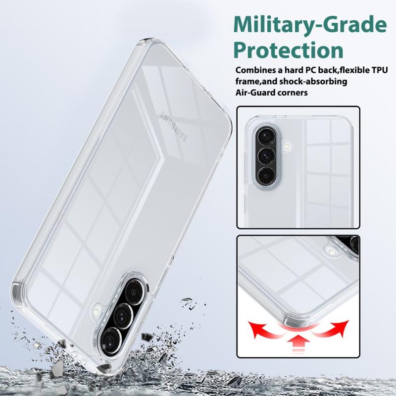 Dette tilbehøret bruker en kombinasjon av akryl og TPU for å holde smarttelefonen i best mulig stand. Samtidig ser forsterkede, støtabsorberende hjørner for å forhindre fallskader, mens den gjennomskinnelige designen viser den vakre utformingen av Samsung Galaxy A36.