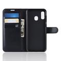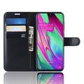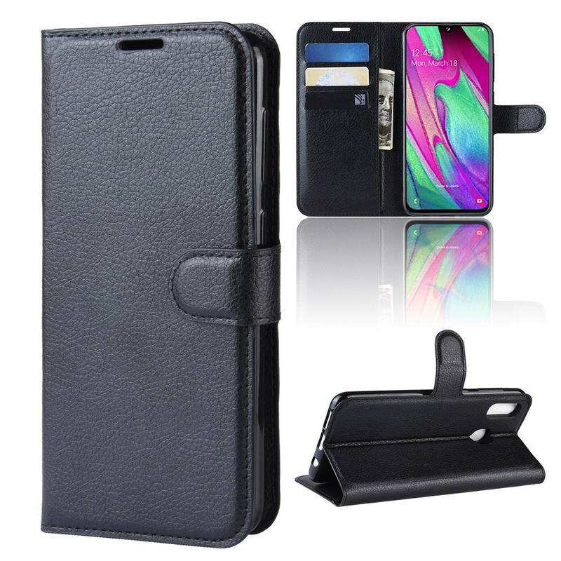 Med Litchi Skin PU Læder Telefon Cover til Samsung Galaxy A40 får du et produkt som kombinerer stil, funksjonalitet og beskyttelse i én elegant pakke. Det er det perfekte valget for enhver Samsung Galaxy A40-eier som ønsker å beskytte telefonen sin med stil.