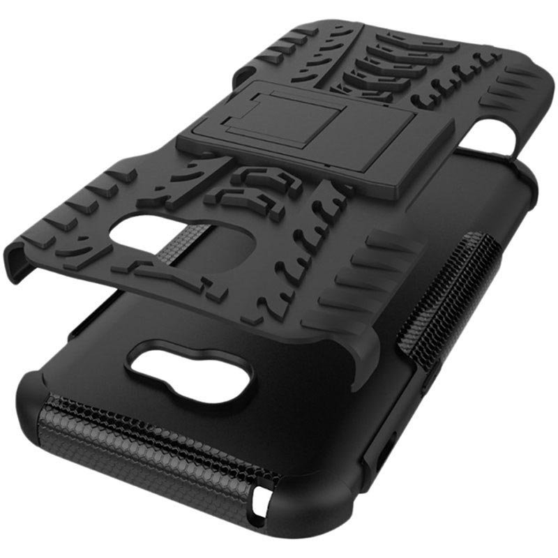 Antiskli Hybrid-dekselet til Samsung Galaxy A5 (2017) har en slank profil, men gir en utmerket beskyttelse. Det karakteristiske mønsteret bedrer grepet og reduserer sjansene for å miste telefonen. Dette hybride dekselet har også et stativ som fastholder enheten din i en perfekt visningsposisjon.