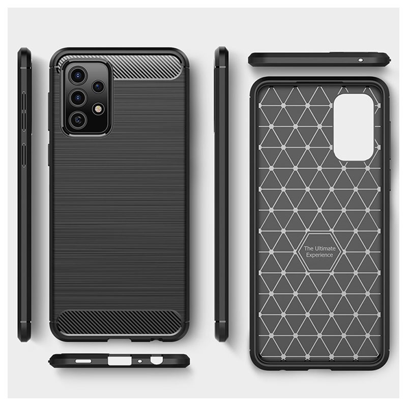 Beskytt din Samsung Galaxy A52 5G, Galaxy A52 4G, Galaxy A52s 5G mot uønskede skader og fall med dette kule dekselet av børstet termoplastisk polyuretan. Dette fleksible dekselet har detaljer av karbonfiber som tilfører din Samsung Galaxy A52 5G, Galaxy A52 4G, Galaxy A52s 5G stil og en moderne look.