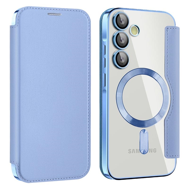 Dette førsteklasses Samsung Galaxy A55-etuiet er laget av TPU, akryl og polyuretan av høy kvalitet i en fin prosess for å sikre en delikat og utsøkt finish. Det er utstyrt med et praktisk kortspor som gjør det enkelt å dra kort og bruke dem når du er på farten, og har en sterk magnet for automatisk lukking, noe som gjør det trygt og praktisk å oppbevare ting på innsiden. Dette Samsung Galaxy A55-etuiet gir effektiv beskyttelse mot daglig slitasje, riper, merker og skrammer, mens den avanserte RFID-blokkeringsteknologien i kortsporet sikrer at dine personlige opplysninger er beskyttet mot tyveri. I tillegg er den innebygde magnetringen kompatibel med MagSafe trådløs lading, slik at du kan lade Samsung Galaxy A55 uten å ta av deg etuiet.
