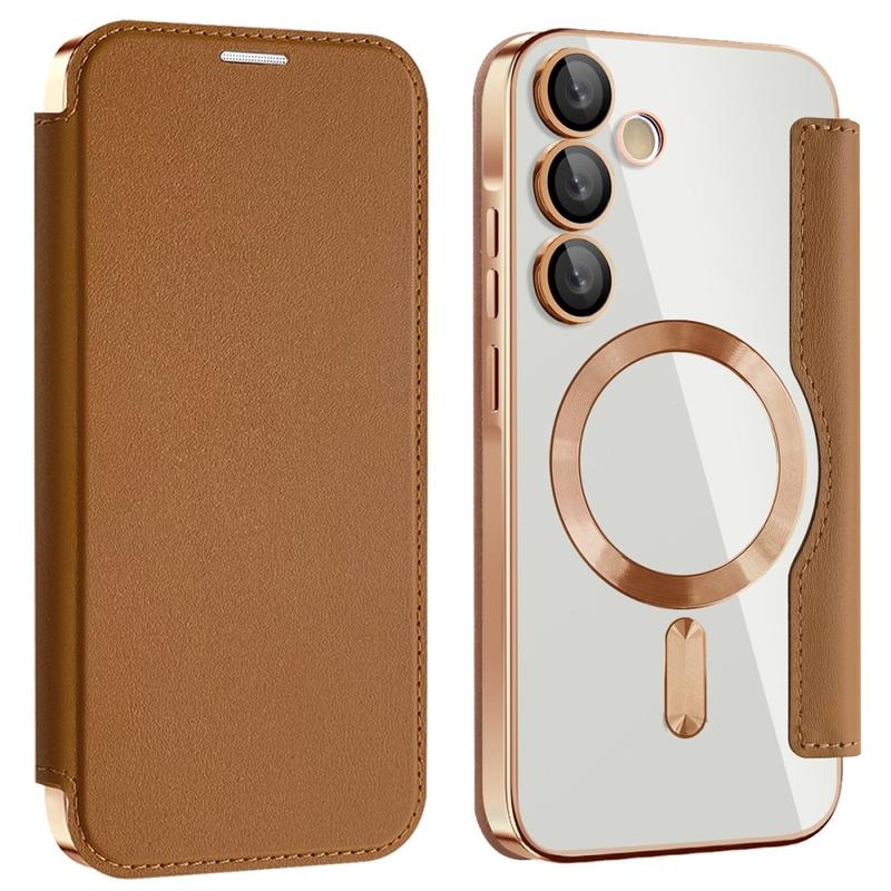 Dette førsteklasses Samsung Galaxy A55-etuiet er laget av TPU, akryl og polyuretan av høy kvalitet i en fin prosess for å sikre en delikat og utsøkt finish. Det er utstyrt med et praktisk kortspor som gjør det enkelt å dra kort og bruke dem når du er på farten, og har en sterk magnet for automatisk lukking, noe som gjør det trygt og praktisk å oppbevare ting på innsiden. Dette Samsung Galaxy A55-etuiet gir effektiv beskyttelse mot daglig slitasje, riper, merker og skrammer, mens den avanserte RFID-blokkeringsteknologien i kortsporet sikrer at dine personlige opplysninger er beskyttet mot tyveri. I tillegg er den innebygde magnetringen kompatibel med MagSafe trådløs lading, slik at du kan lade Samsung Galaxy A55 uten å ta av deg etuiet.