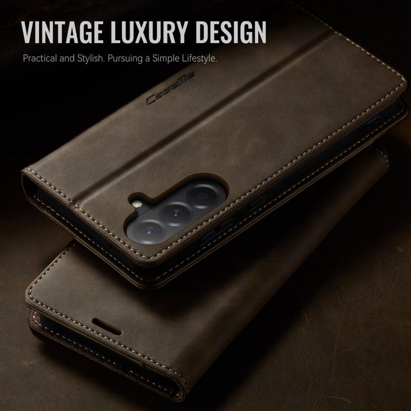 CASEME 033 Series Wallet Case for Samsung Galaxy A57 er laget av polyuretan med kalvestruktur kombinert med TPU, og gir full beskyttelse mot riper, støt og daglig slitasje, samtidig som det opprettholder et førsteklasses, elegant utseende.