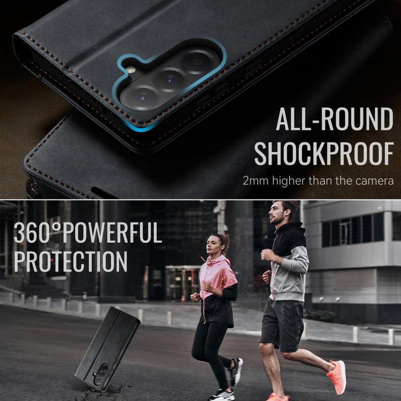 CASEME 033 Series Wallet Case for Samsung Galaxy A57 er laget av polyuretan med kalvestruktur kombinert med TPU, og gir full beskyttelse mot riper, støt og daglig slitasje, samtidig som det opprettholder et førsteklasses, elegant utseende.